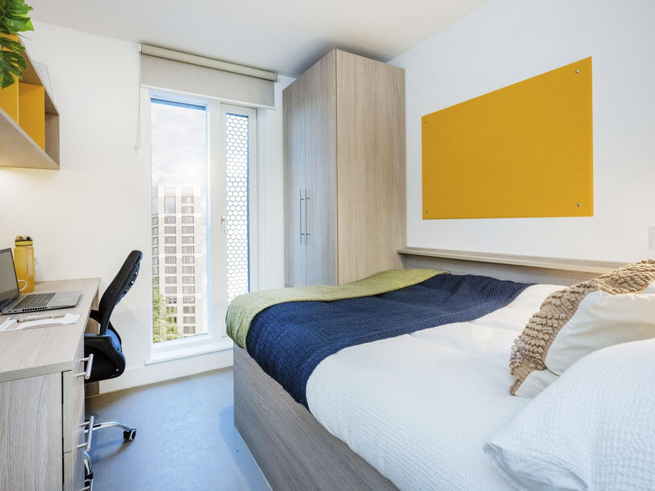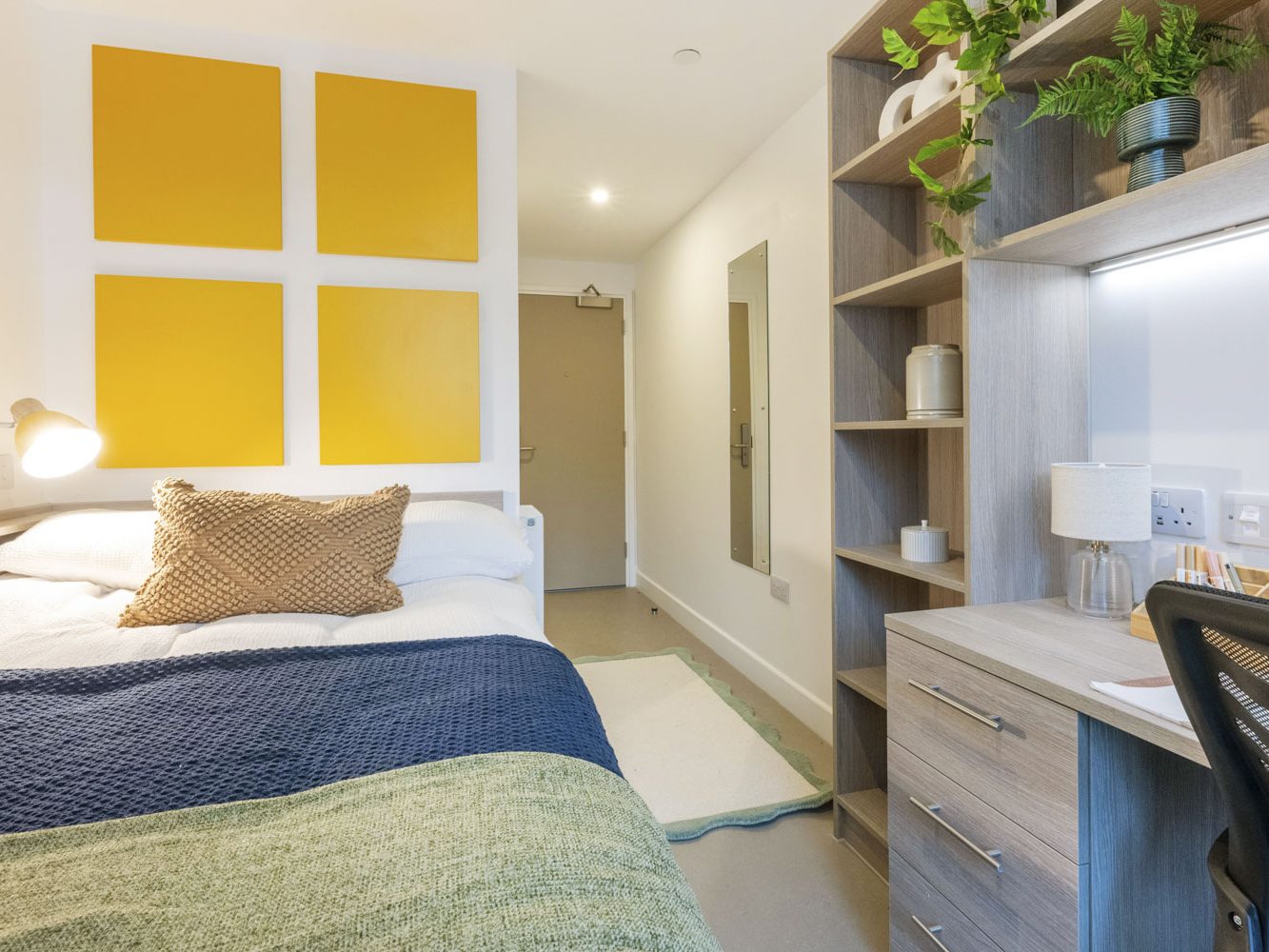 Looking for a mix of privacy and community? The Standard Ensuite Rooms are part of shared cluster flats, giving you your own private space while sharing a kitchen and living area with your flatmates.