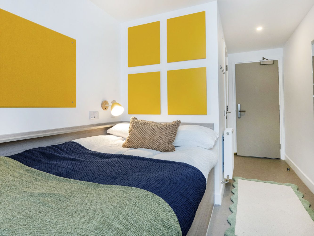 At Timber Yard, every room has been designed with student life in mind. You’ll have your own private bathroom, small double bed, ample storage, and dedicated study space with a desk and pinboard – everything you need to study, sleep, and relax in comfort.